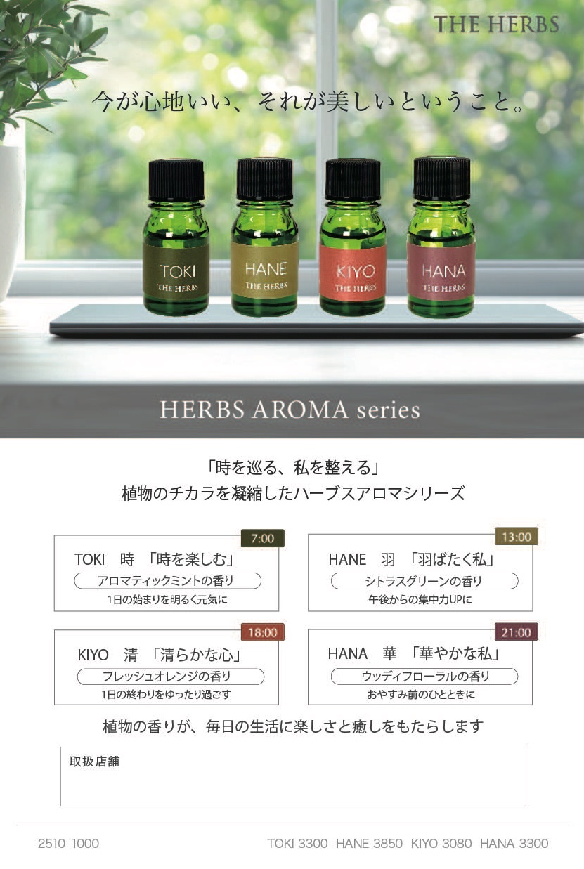 「時を巡る、私を整える」植物のチカラを凝縮したハーブスアロマシリーズ HANE 羽 「羽ばたく私」