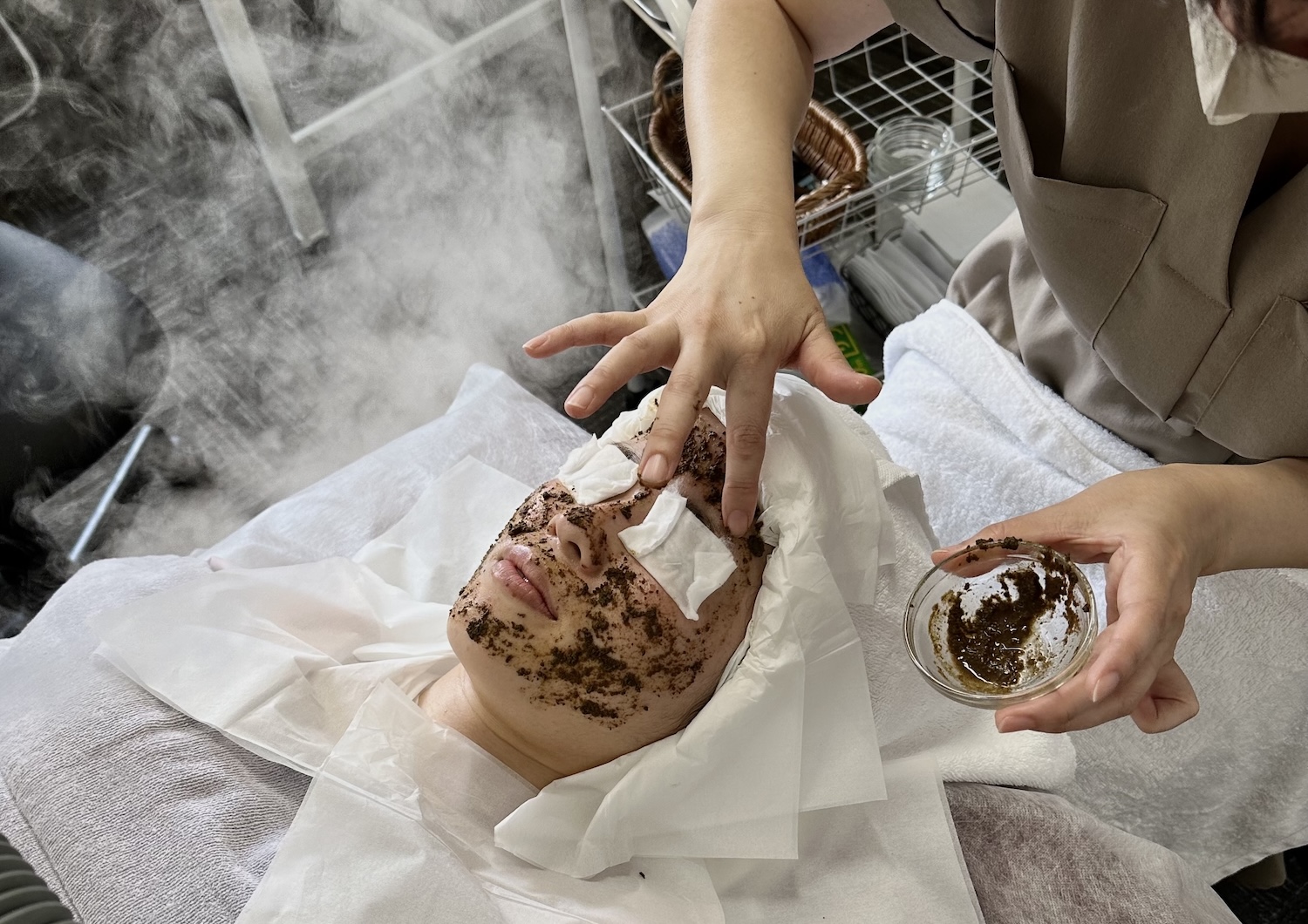 ゴマージュ剤、リキッドアルモニクの配合量を微調整していただくことで、お一人お一人の肌の状態に合わせた施術を行うことができます。